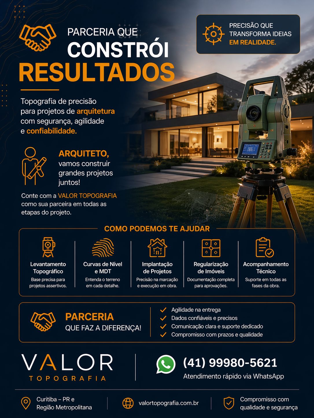 Topografia de precisão para projetos de arquitetura, implantação de obras, regularização de imóveis e acompanhamento técnico.