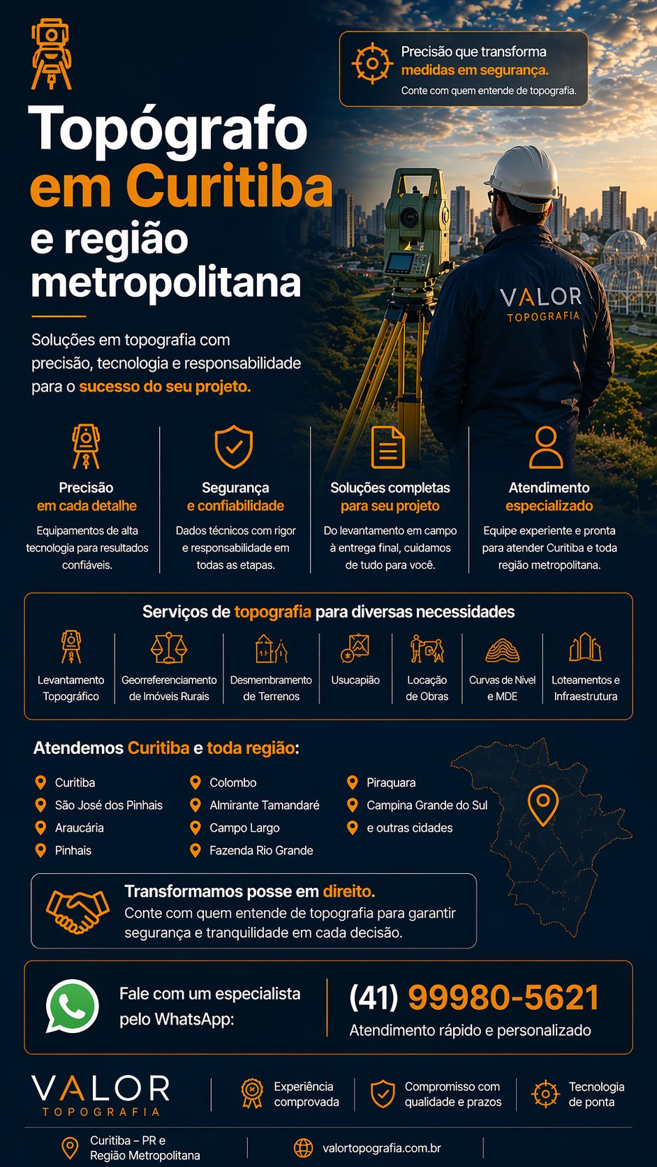 Alta precisão nos levantamentos, equipe especializada, atendimento em Curitiba e região e suporte completo do início ao fim.
